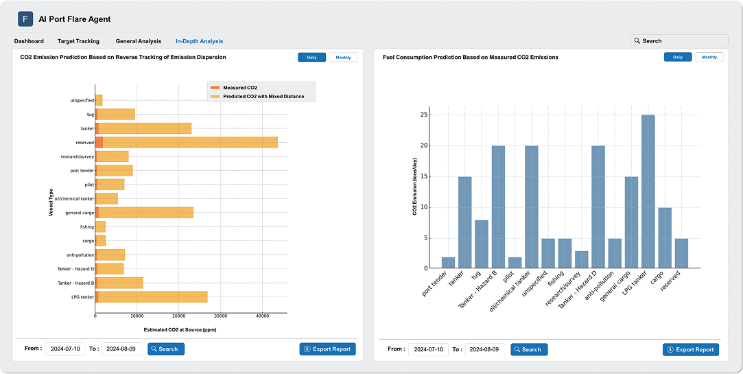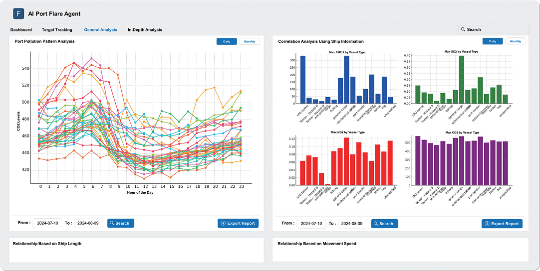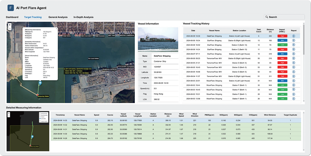 선박에서 발생 되는 정보와 항만에서 수집된 매연정보를 빅데이터 분석을 통해 유일한 선박의 매연데이터를 생성합니다.