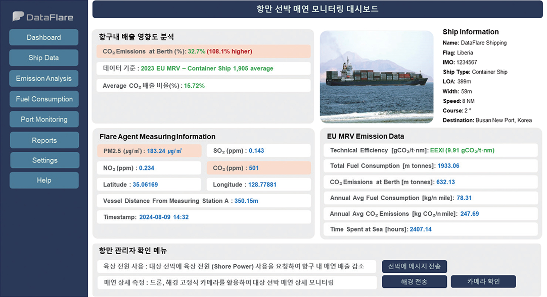 데이터플레어의 항만 대기오염 모니터링 솔루션은 기존에 항만에 설치된 육상전기공급설비(AMP) 및 미세먼지 저감장치(DPF)의 낮은 사용률을 획기적으로 개선할 수 있는 모니터링 솔루션입니다.
